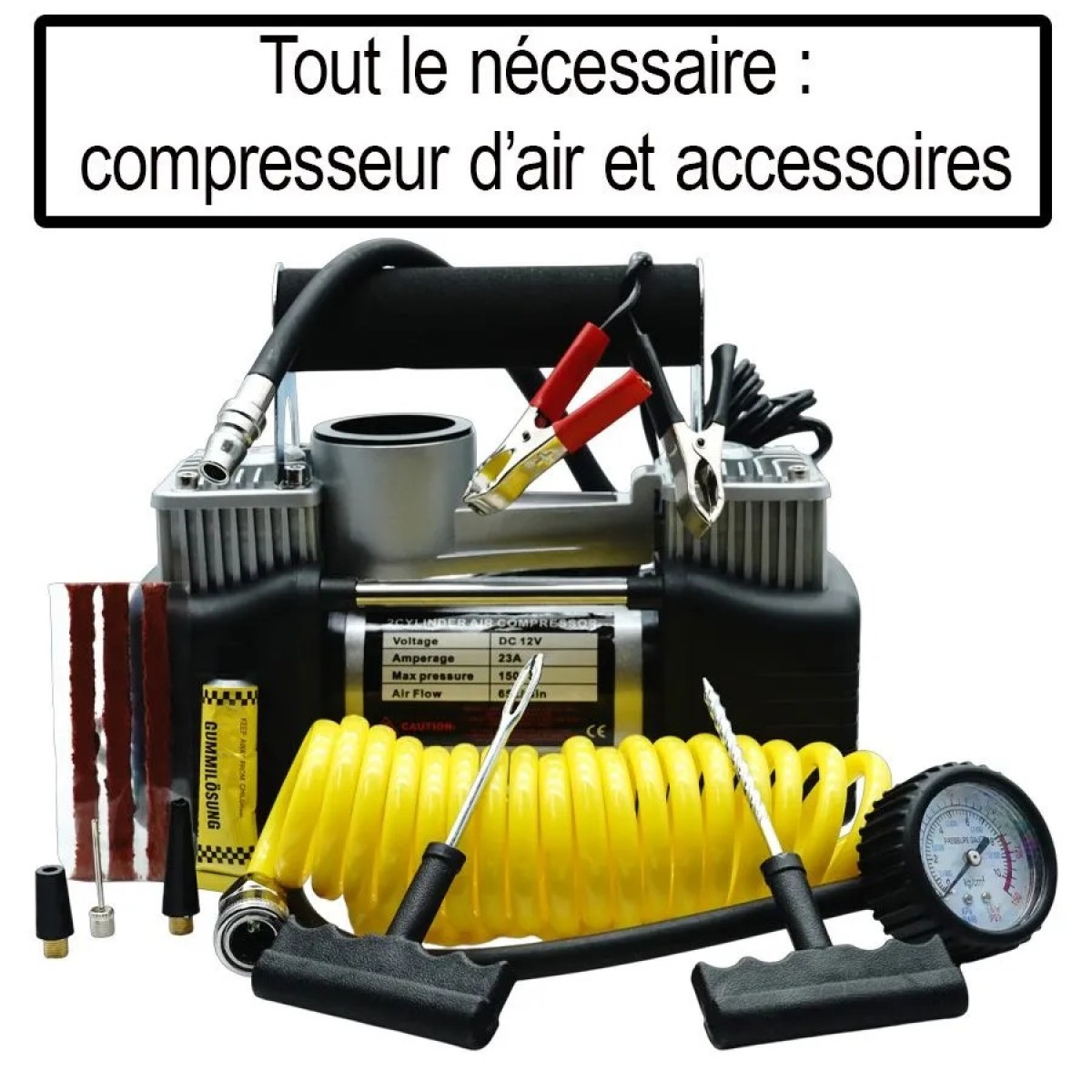- Compresseur 12 V conçu pour pneus d’auto, vélo et moto