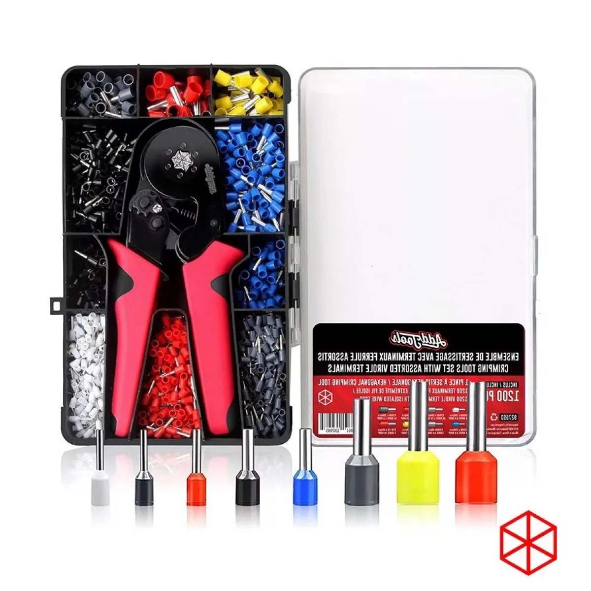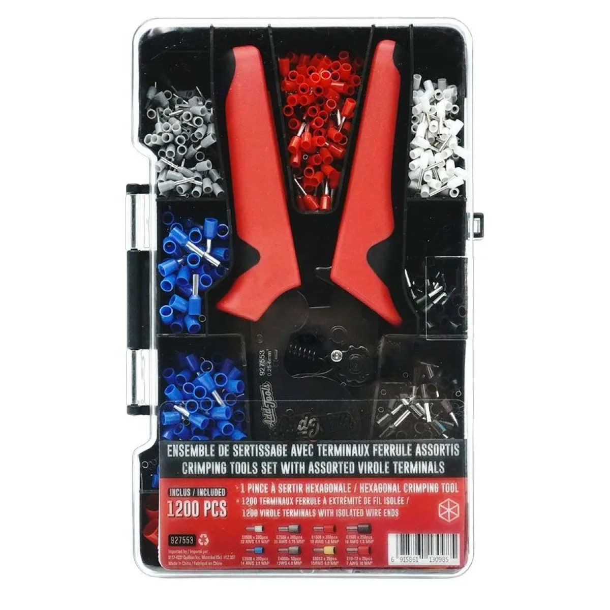 - Comprend 1200 viroles isolées assorties (23–7 AWG)