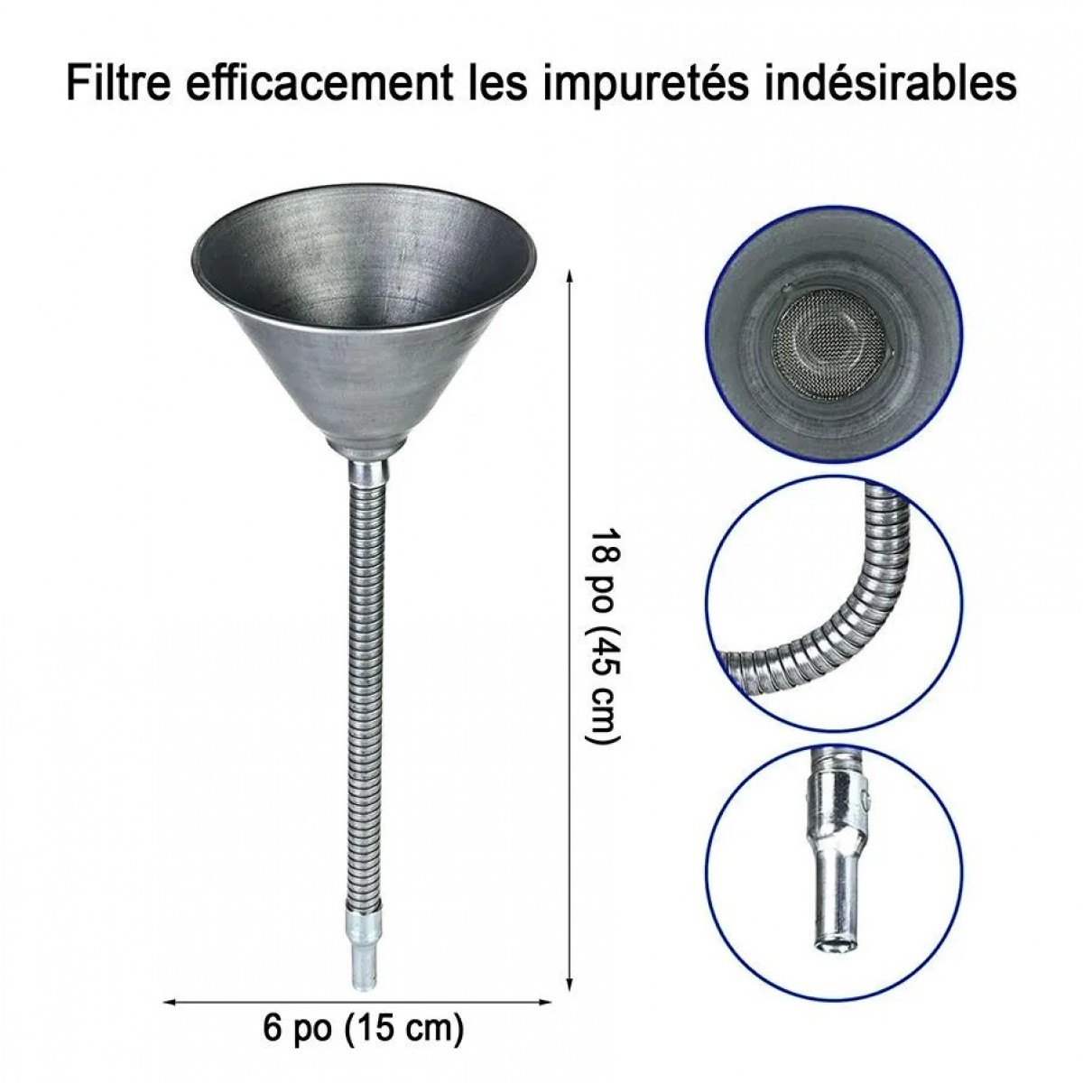 L’entonnoir métallique à col flexible est conçu pour faciliter le transfert de liquides dans les applications mécaniques, automobiles et d’atelier. Son large diamètre de 6 po permet un versement rapide et contrôlé, même avec de grands volumes.