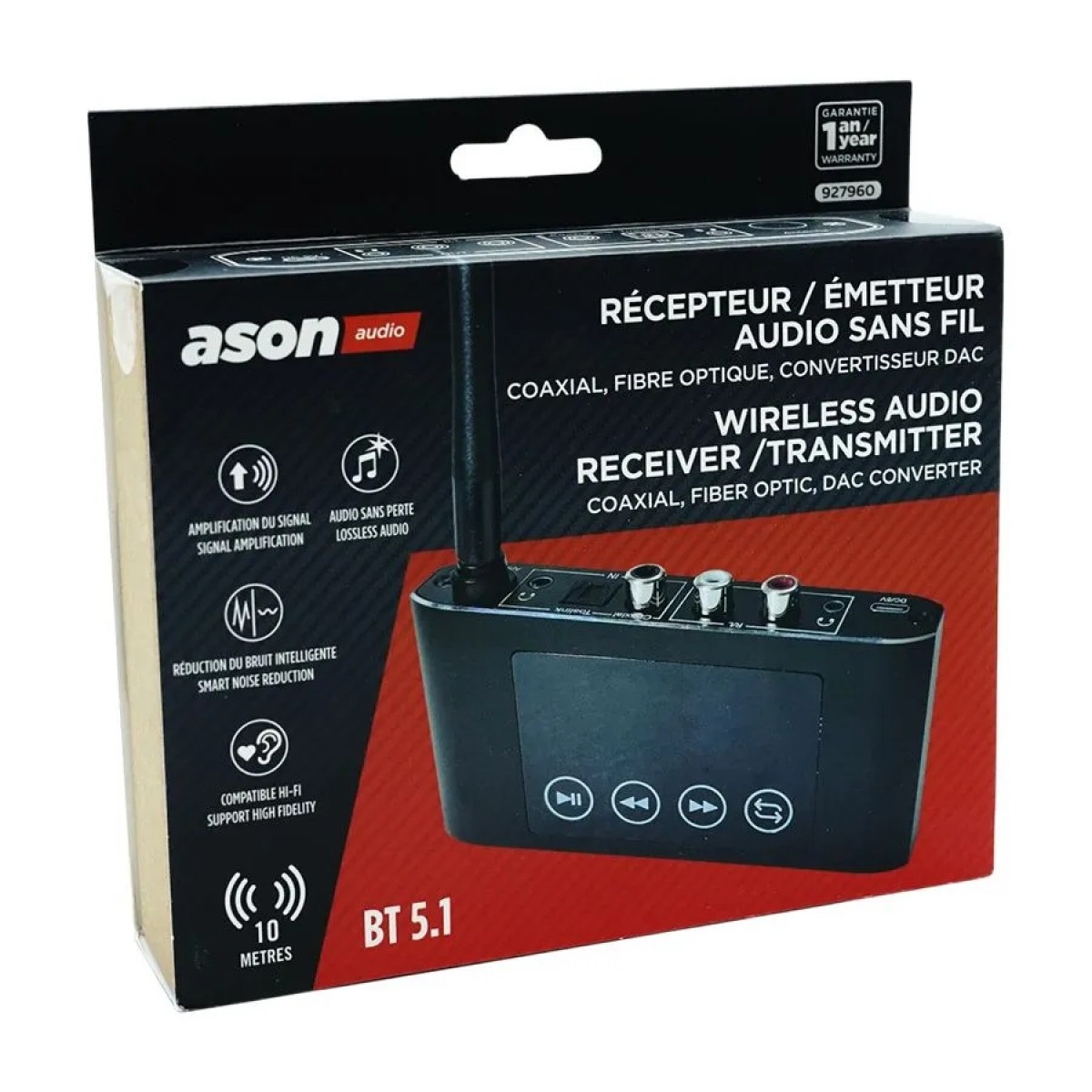 L’émetteur récepteur audio Bluetooth sans fil ASON AUDIO transforme n’importe quel système audio grâce à ses entrées optique, coaxiale et son convertisseur DAC intégré. Le DAC (Digital-to-Analog Converter) convertit précisément les signaux audio numériques en son analogique haute fidélité. Ceci améliore la clarté, réduit les distorsions et assure un audio sans perte, idéal pour les systèmes Hi-Fi et les amplificateurs. Combiné à une réduction du bruit intelligente, le DAC garantit une reproduction sonore propre et fidèle.