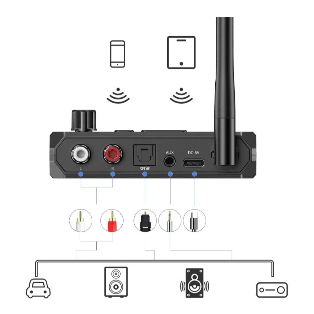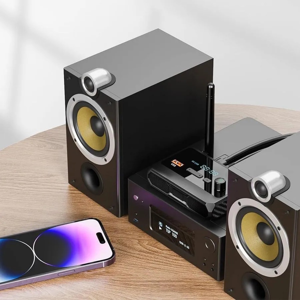 En tant que récepteur, l’appareil reçoit le son d’un téléphone, d’une tablette ou d’un ordinateur pour l’acheminer vers un amplificateur, un haut-parleur ou un système audio existant. La connexion Bluetooth 5.3 assure une performance stable et une portée pouvant atteindre 10 mètres (32,8 pi), garantissant une transmission fiable dans divers contextes.