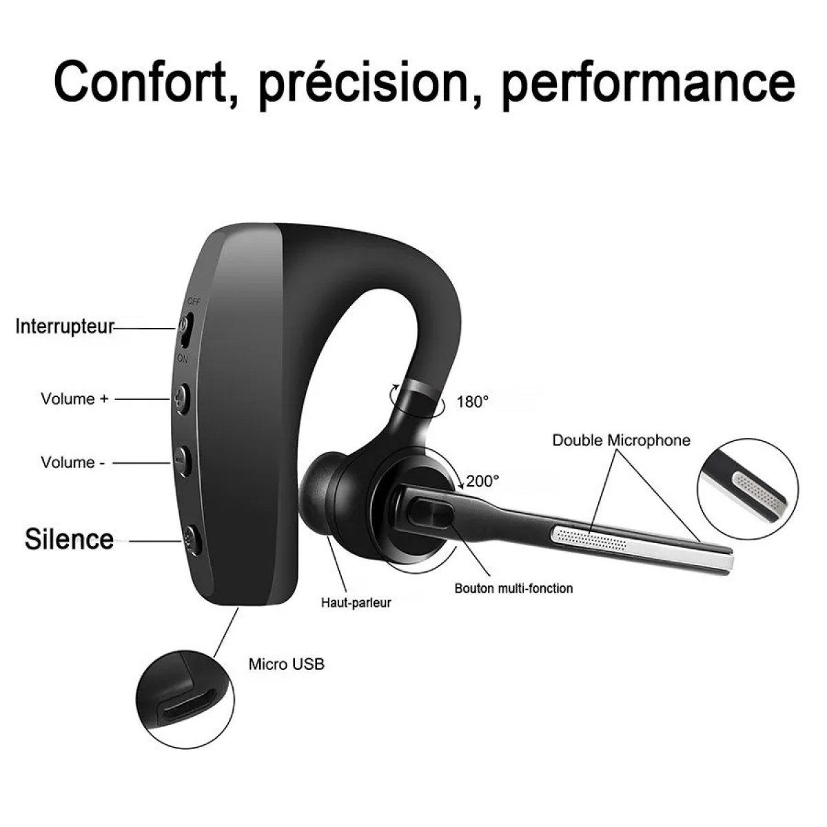 Cette oreillette Bluetooth avec réduction du bruit a été conçue pour offrir une communication claire et professionnelle, même dans les environnements les plus exigeants. Grâce à son double microphone , elle capte votre voix avec précision tout en limitant les bruits ambiants, notamment grâce à sa réduction du bruit du vent, particulièrement utile lors des déplacements extérieurs. Compatible Bluetooth 5.2, elle assure une connexion stable et réactive.