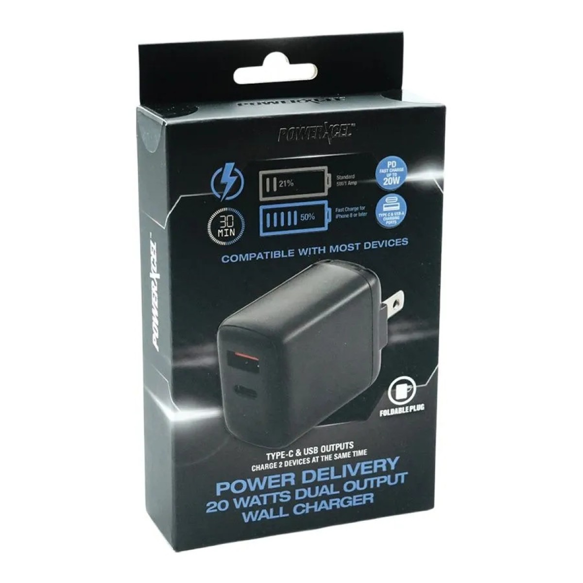 Chargeur mural double USB/USB-C POWERXCEL à charge rapide - 20W PD - 3A