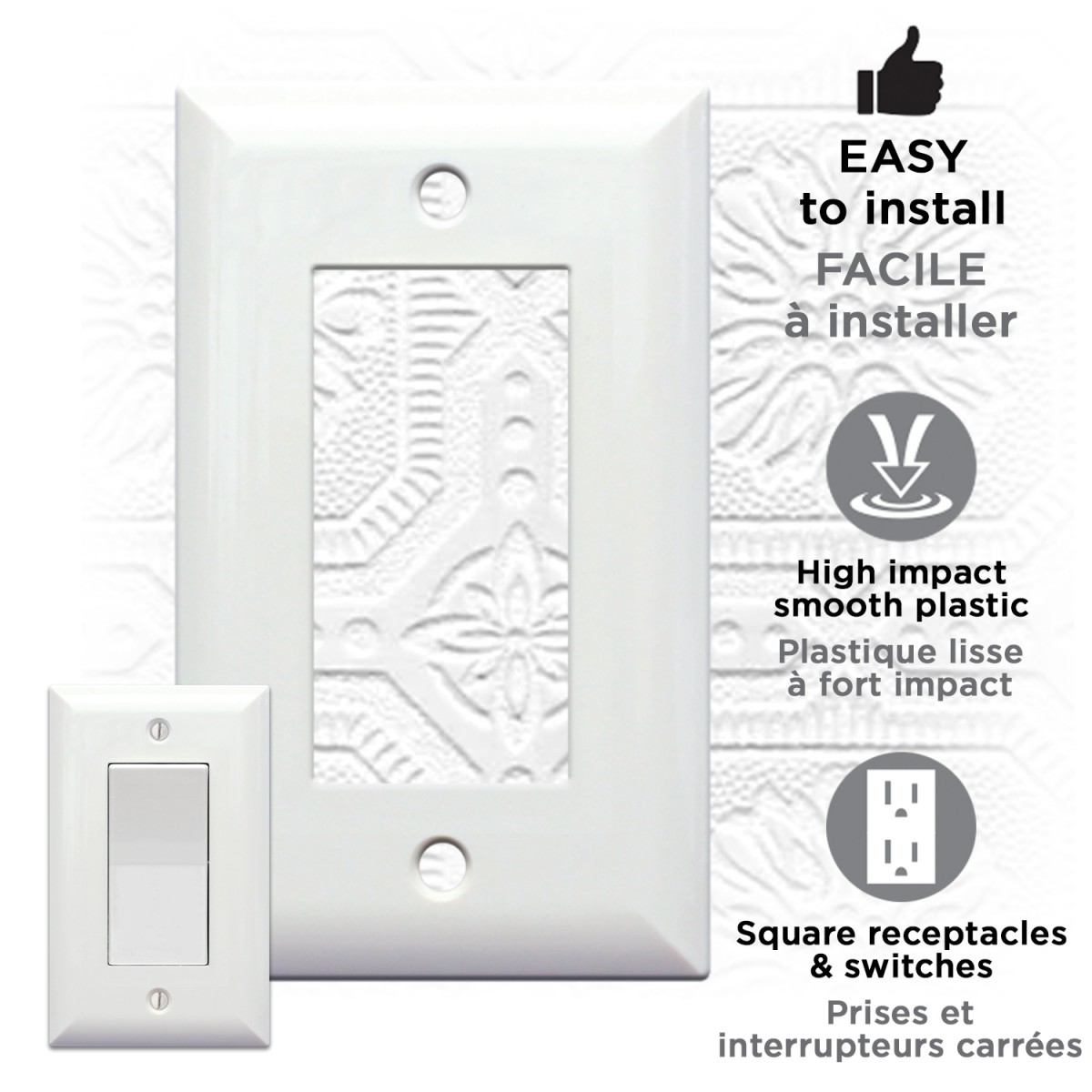 eLink Plaque murale décorative pour prise électrique ou interrupteur - Blanc.