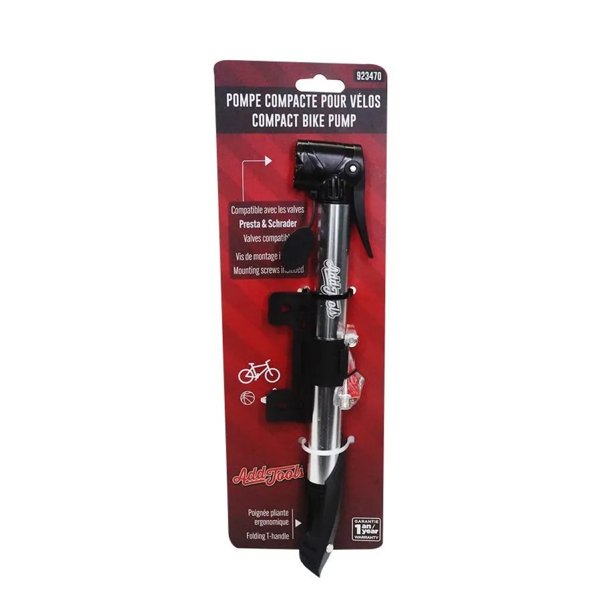 The Addtools hand pump is a practical and versatile tool for inflating your bicycle tires, balls and inflatable toys. This pump is compatible with Presta and Schrader valves, allowing you to use it with a wide variety of bikes. The included screws make it easy to mount the pump to your bike frame, allowing you to always have it at hand when traveling. Whether you're an avid cyclist or need a versatile pump for different needs, the Addtools Hand Pump is the perfect accessory to accompany you on your adventures.