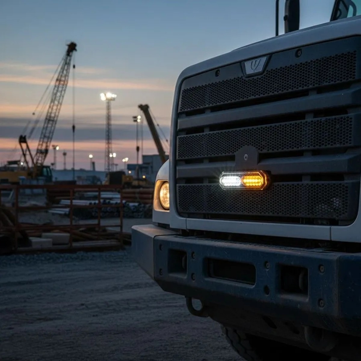 - Bright amber/white LED lighting visible from far away