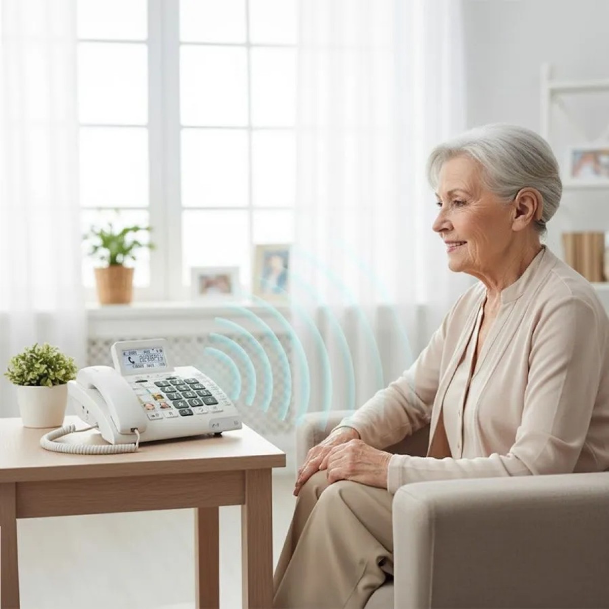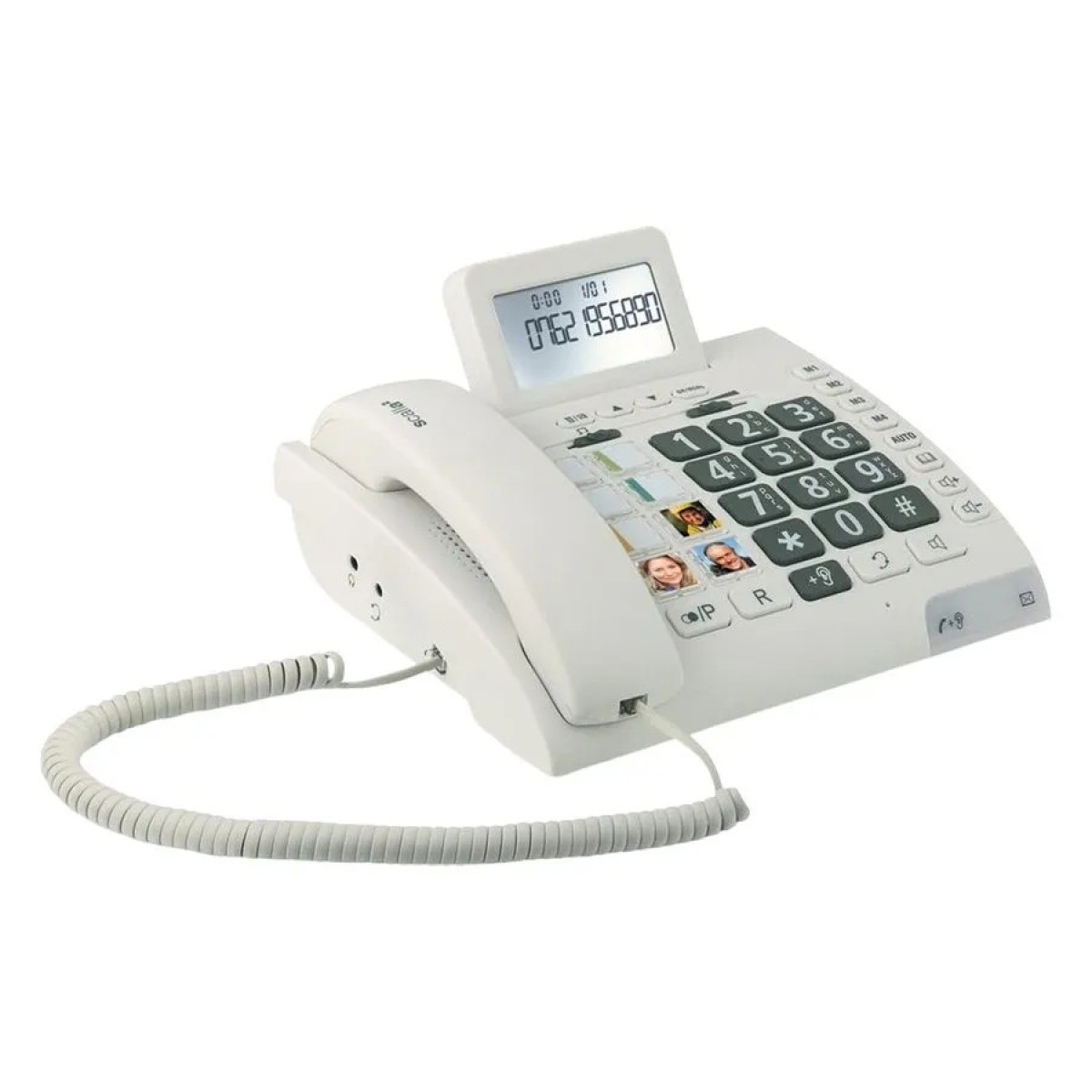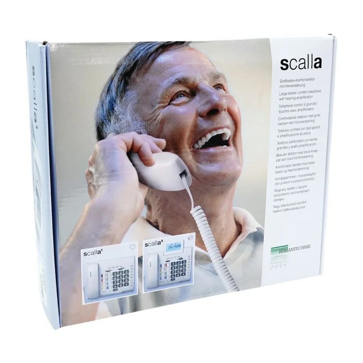 The amplified corded phone HUMANTECHNIK Scalla 2 delivers clearer calls with up to 40 dB amplification, making it ideal for seniors and hearing-impaired users. Adjustable handset volume, tone and ringer settings provide a personalized listening experience. A bright flash alert located on the front of the base clearly signals incoming calls for added visibility.