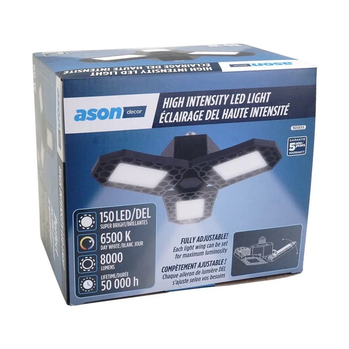This garage light designed by Ason Decor is made up of 3 fins with an adjustable 90° angle for use adapted to your needs. Offering 150 powerful LEDs with a color temperature of 6500 K, you will benefit from the best possible lighting for your workshop, your garage or even your shed.