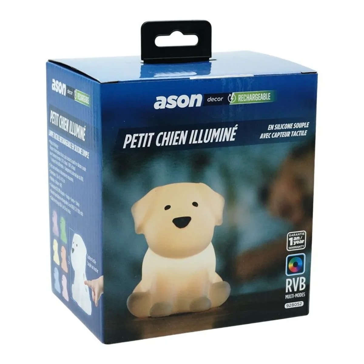 This ASON DECOR rechargeable night light provides soft and soothing ambient lighting, ideal for a nightstand, bedroom, or relaxation area. Its lying dog design adds a warm decorative touch while remaining fully functional.