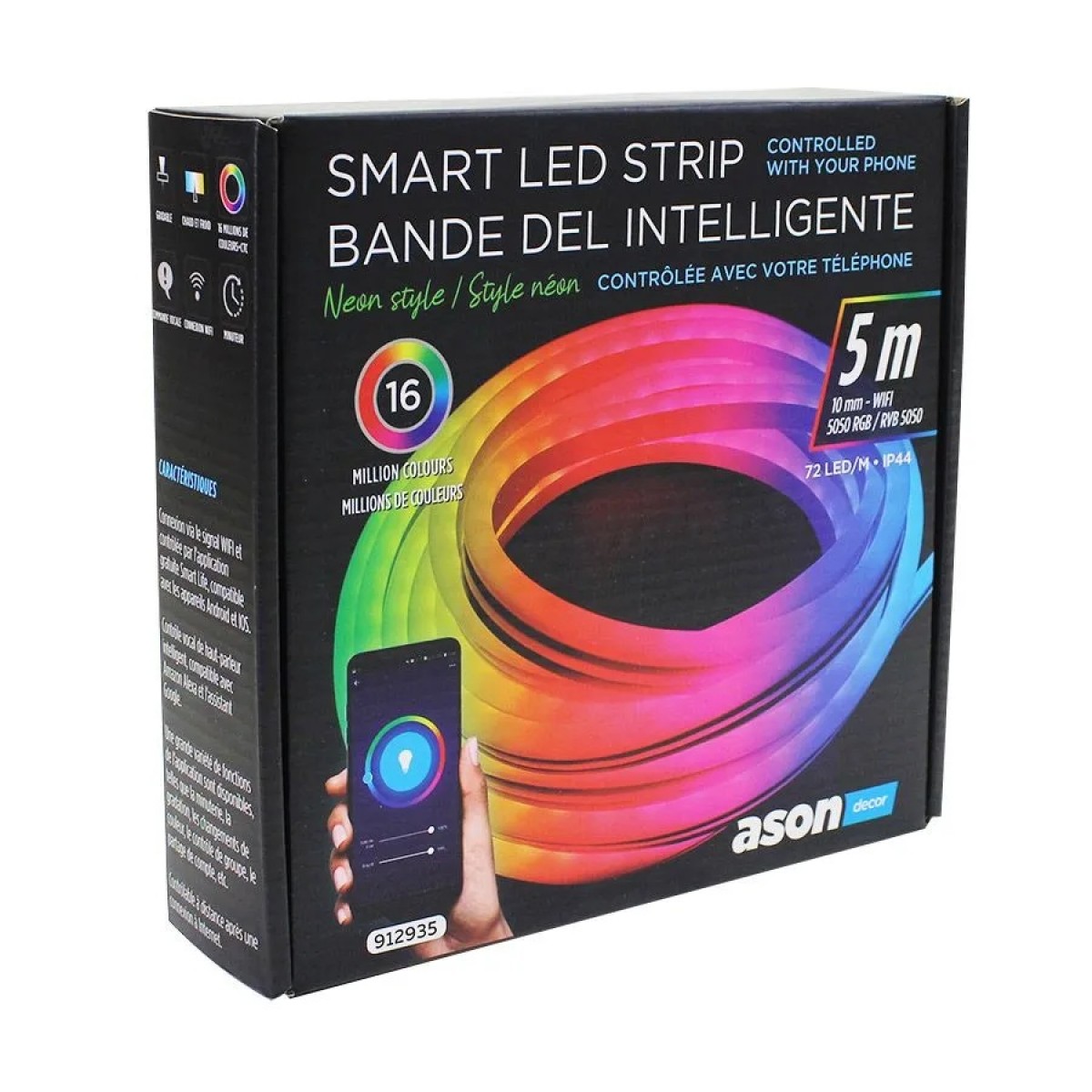 The smart flexible LED strip designed by Ason Decor is the perfect accomplice to bring a unique touch to your decor as much for a relaxing atmosphere as to bring a festive side. Including control via the Smart Life app, you will have access to a variety of functions such as timer, dimming, color changes, group control, account sharing and more. You will also have the possibility to control it from voice command via voice assistants such as Amazon Alexa and the Google assistant. With ease of control and over 16 million changing colors, you'll have access to surprising lighting to suit your tastes.