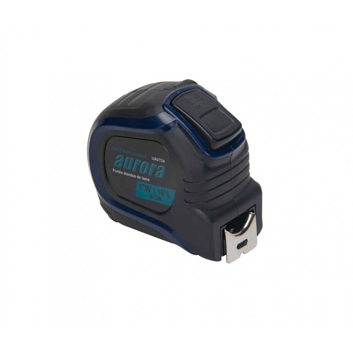 Find comfort and precision with Aurora Tools®' durable, impact-resistant Tape Measure. The compact design fits perfectly in your hand, providing greater stability and accuracy on the jobsite. The nylon-coated blade offers greater wear-resistance -- 10x more durable than a normal blade. With a non-slip end hook and lock button, you'll always have the correct measurement.