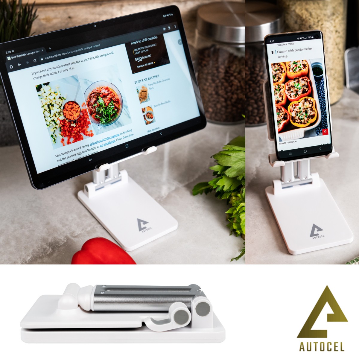 Autocel SPS-WH - Foldable phone stand with dual pole White