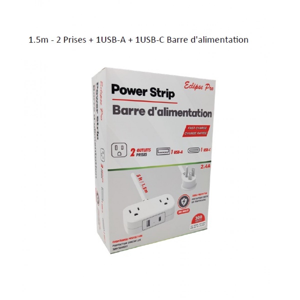 Eclipse Pro Power Strip 2 Outlets with 1 Port USB-A and 1 Port USB-C