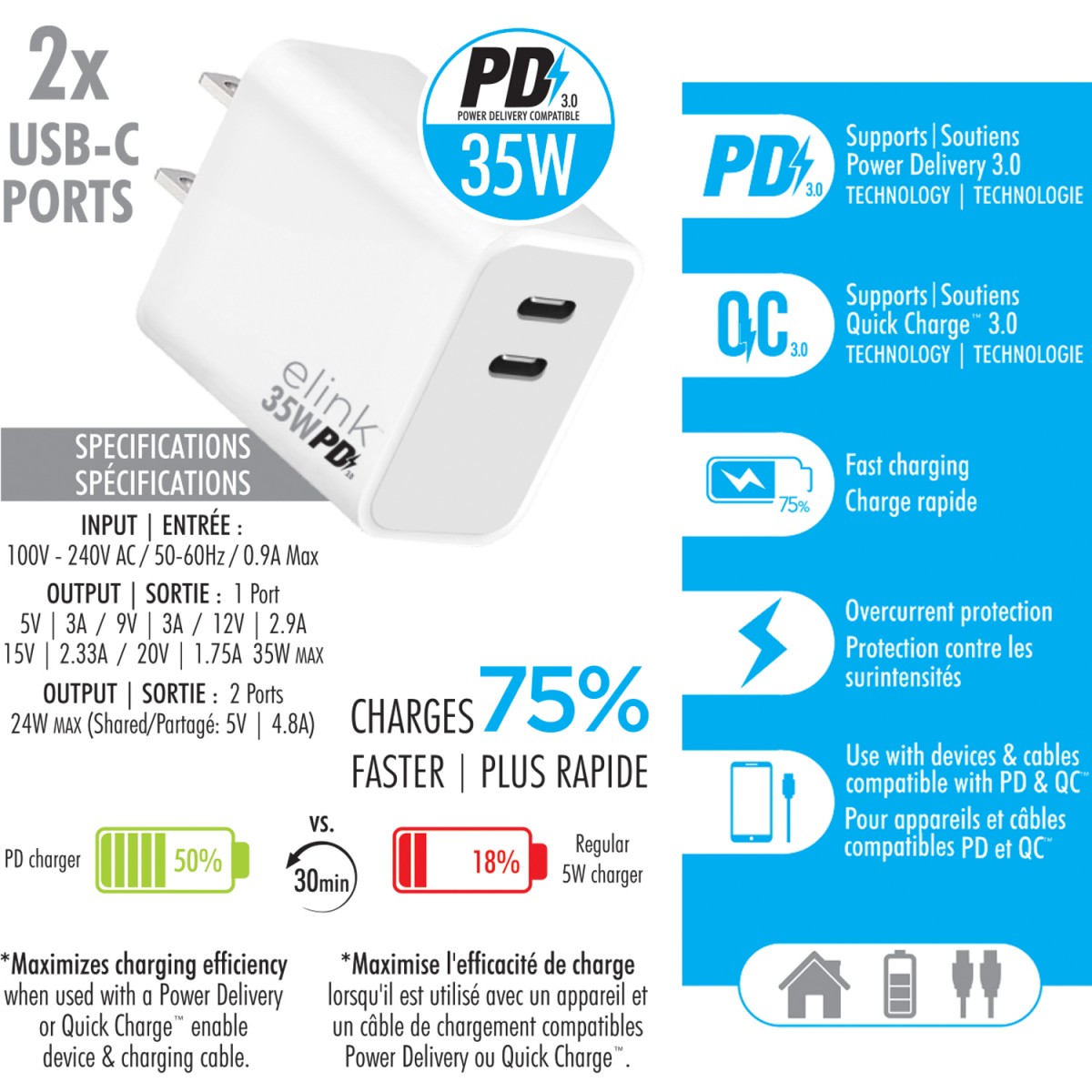 eLink 35W Dual-port USB-C Power Delivery fast wall charger eLink 35W Dual-port USB-C Power Delivery fast wall charger