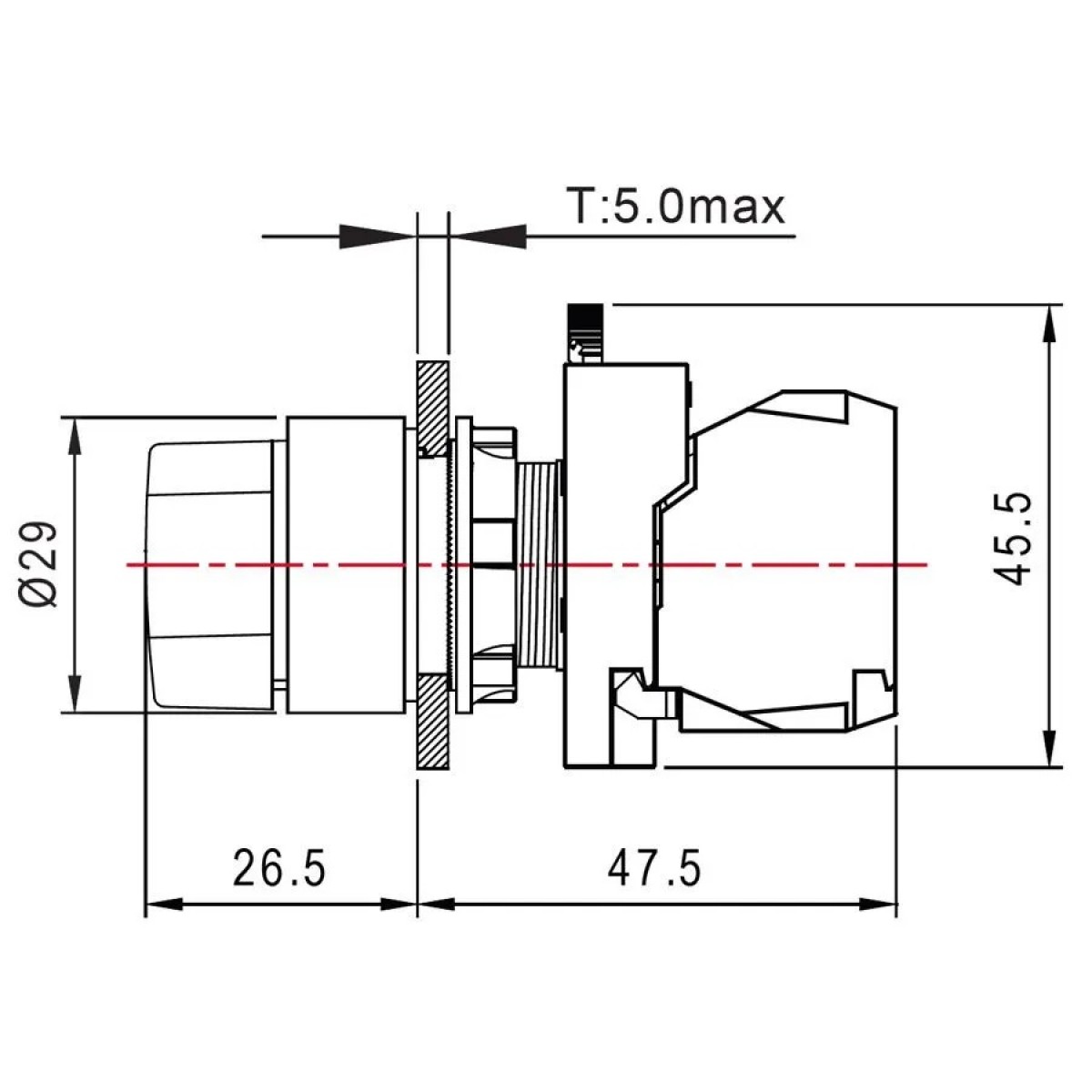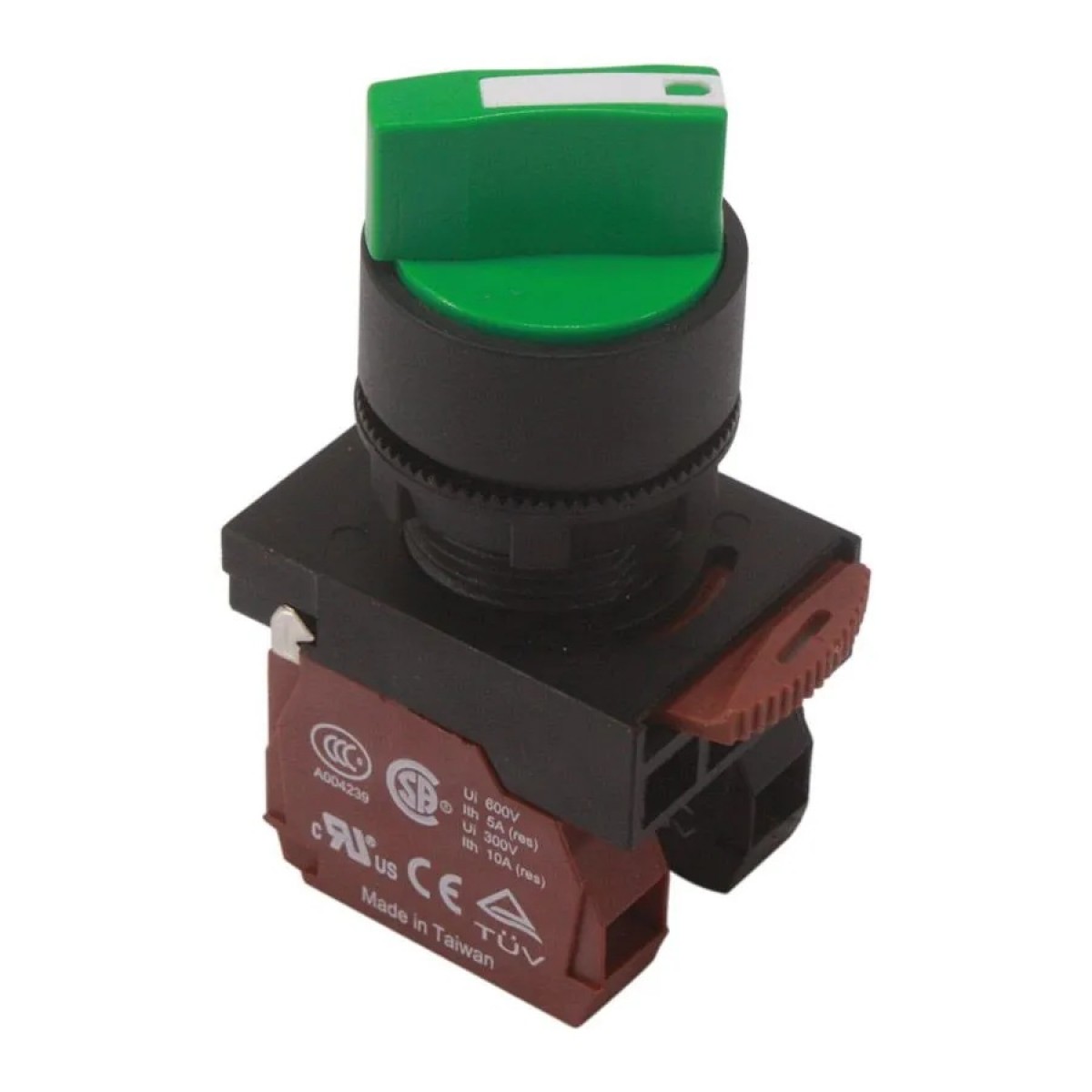 This green rotary switch offers two positions at 45° for precise control. Equipped with N.O./N.C. contacts, it is perfect for electrical circuits. Its sturdy design and bright color make it an ideal choice for various applications.