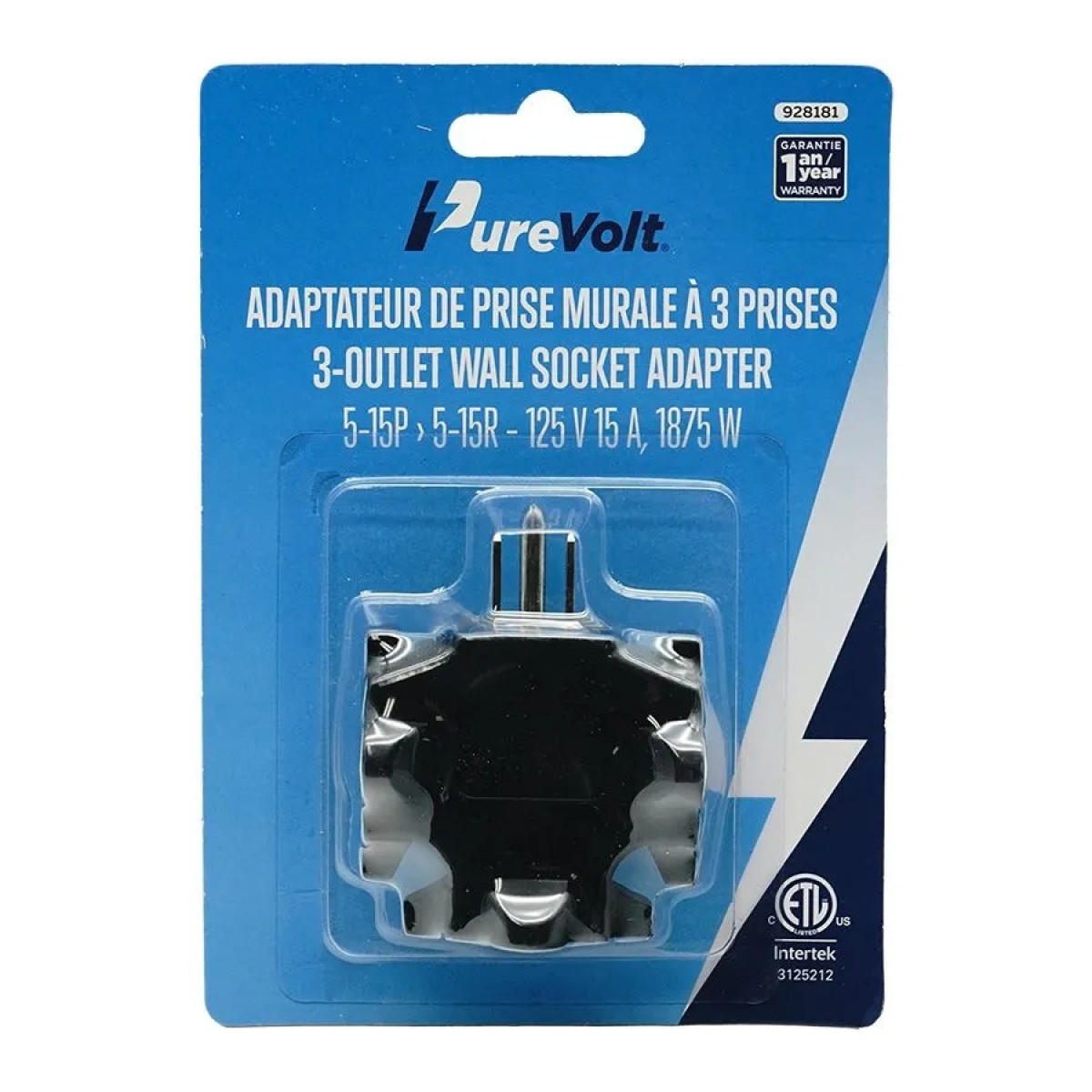 Designed for standard North American 5-15P to 5-15R outlets, this 3 outlet adapter supports up to 125 V and 15 A with a maximum load of 1875 W. Its grounded design and ETL certification ensure safe and reliable operation for everyday use.