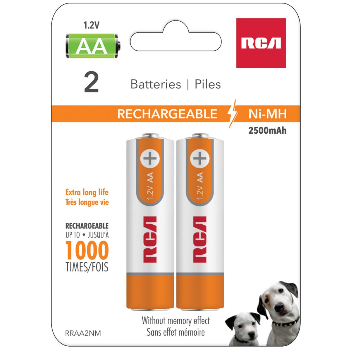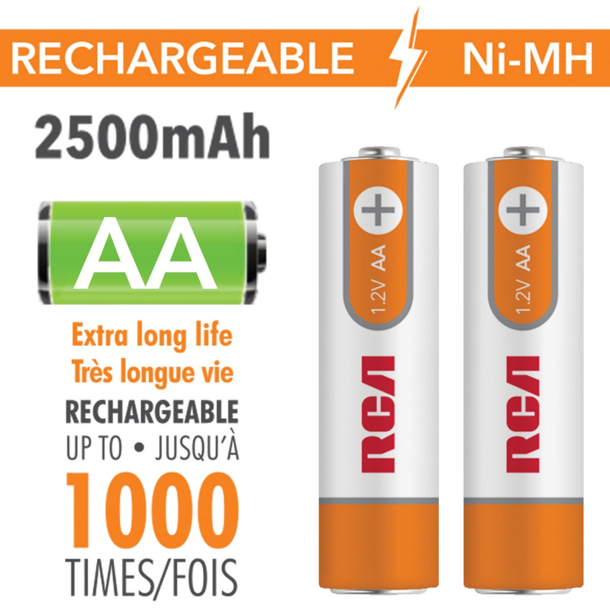 RCA Rechargeable AA Nickel-Metal Hydride Battery Ni-MH 2500mah - 2 pack