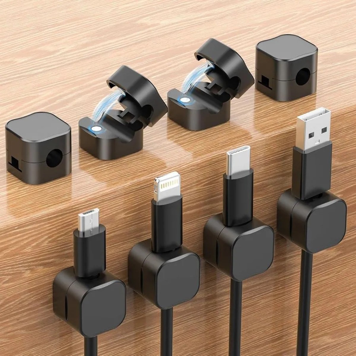 The magnetic cable holders offer a practical and modern way to keep your cables organized and accessible. With these magnetic cable holders, your charging cords, USB cables, or power wires stay in place without tangling. Each holder combines a magnetic closure with a strong adhesive backing, allowing easy installation on desks, walls, or in cars. Compact, reusable, and discreet, these magnetic cable organizers are ideal for a clean and tidy setup.