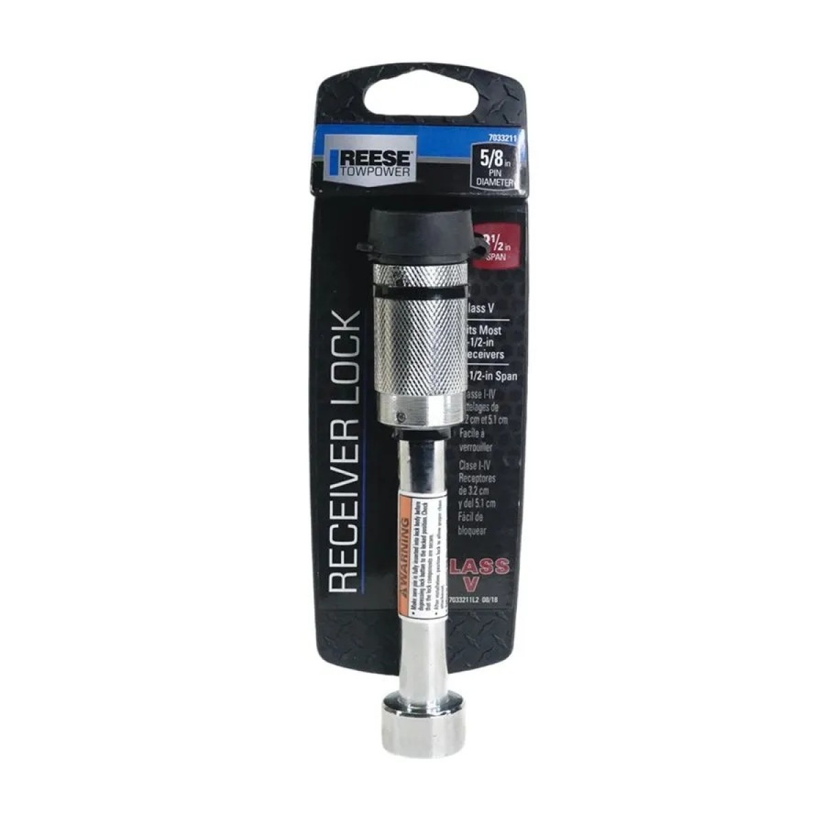 The Reese Towpower 7033211 Receiver Lock is a must-have safety accessory for your tow vehicle. Designed with a 3-1/2" reach for 2-1/2" square tube receiver, this lock provides optimal security for Class V ball mounts with a 2-1/2" receiver pinhole. 5/8". It features a push-button locking mechanism, making it easy to lock your hitch in place. The durable rubber cap keeps dirt out, protecting your lock from outside elements. With the Reese Towpower 7033211 trailer hitch receiver lock, you can ride safely knowing your trailer is securely attached to your vehicle
