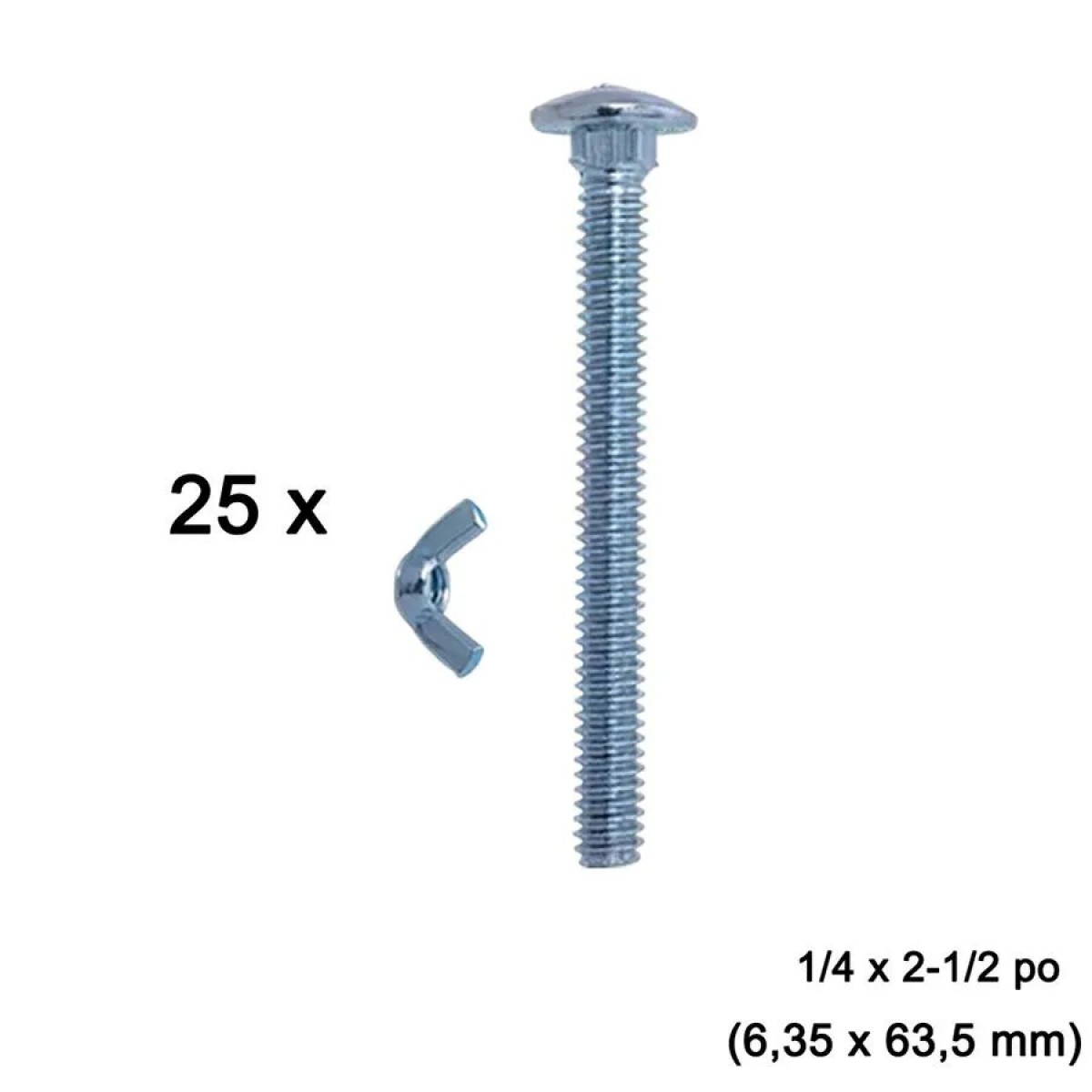 Each set includes 25 bolts sized 1/4 x 2-1/2 in (6.35 x 63.5 mm) with wing nuts included for quick, tool-free tightening. Easy to install, these tempo shelter bolts guarantee a stable and secure assembly for any portable structure.