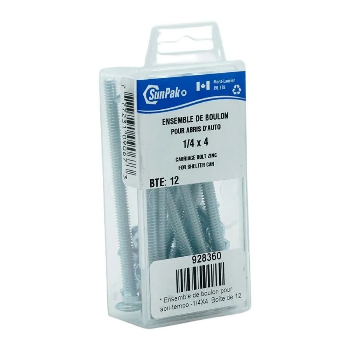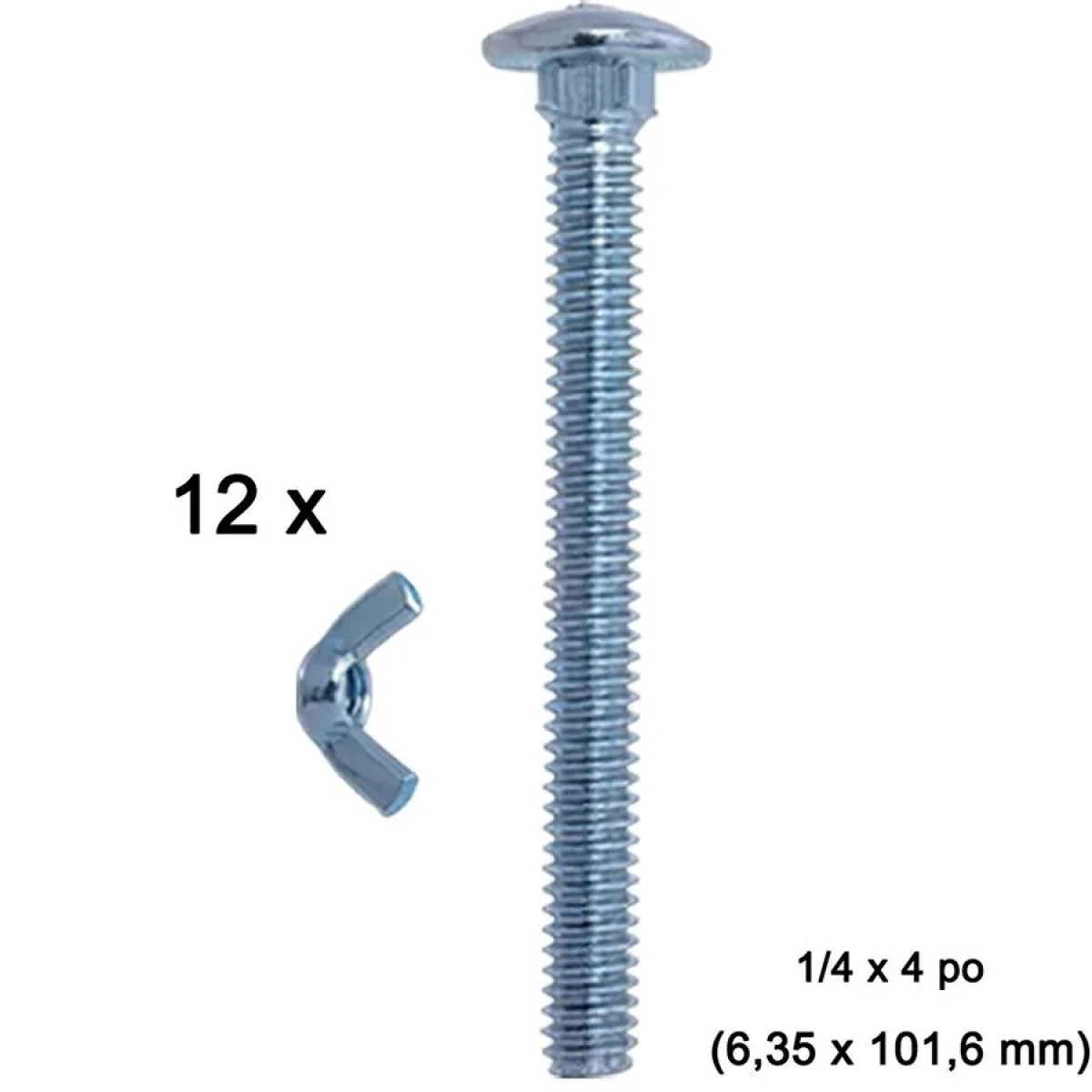 Each set includes 12 bolts sized 1/4 x 4 po ( 6,35 x 101,6 mm) with wing nuts included for quick, tool-free tightening. Easy to install, these tempo shelter bolts guarantee a stable and secure assembly for any portable structure.