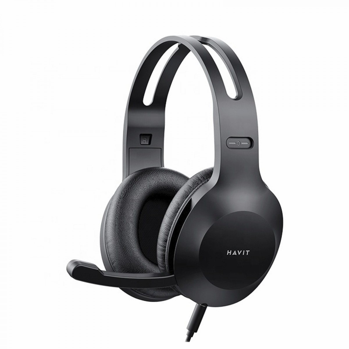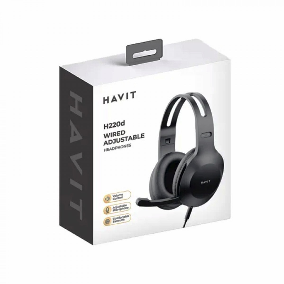 Havit H220D Casque audio filaire avec prise jack 3,5 mm et microphone réglable - Noir