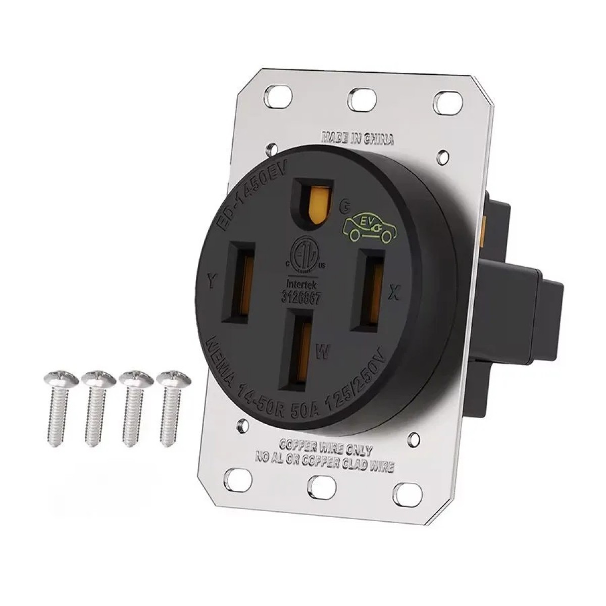 Pensée pour les applications exigeantes, cette prise de recharge pour véhicule électrique est fabriquée en acier nickelé résistant à la corrosion, ce qui contribue à sa durabilité et à sa fiabilité à long terme. La configuration NEMA 14-50R en fait un choix pratique pour les projets de recharge de véhicules électriques nécessitant une connexion robuste et stable.