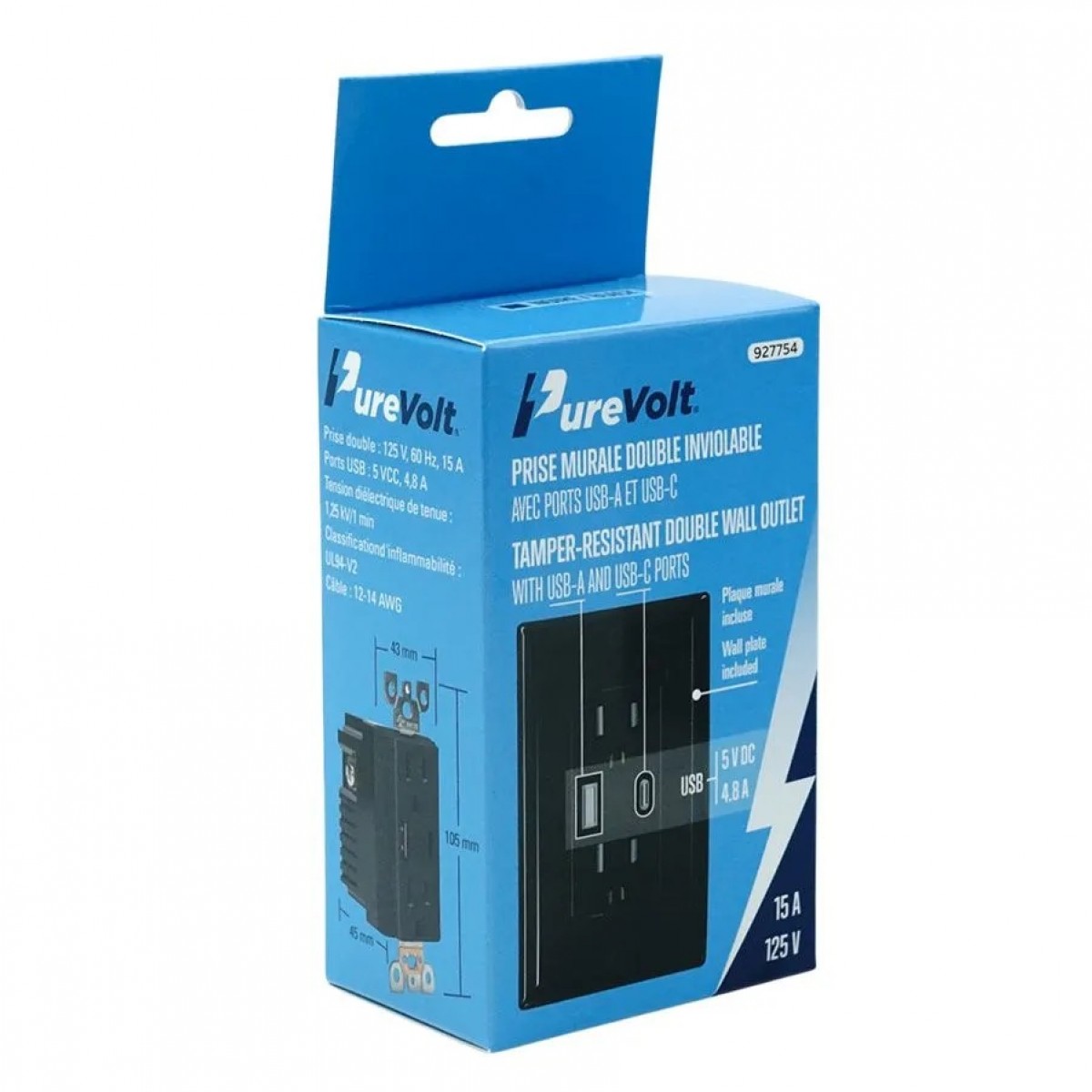 La conception inviolable (TR) améliore la sécurité électrique en empêchant l’insertion d’objets étrangers dans la prise. Son boîtier ignifuge et ses composants de haute qualité assurent une longue durée de vie. Cette prise murale USB est conçue pour une puissance nominale de 15 A à 125 V CA, 60 Hz, accepte des fils de calibre 12 à 14 AWG, est certifiée CUL et vendue à l’unité.