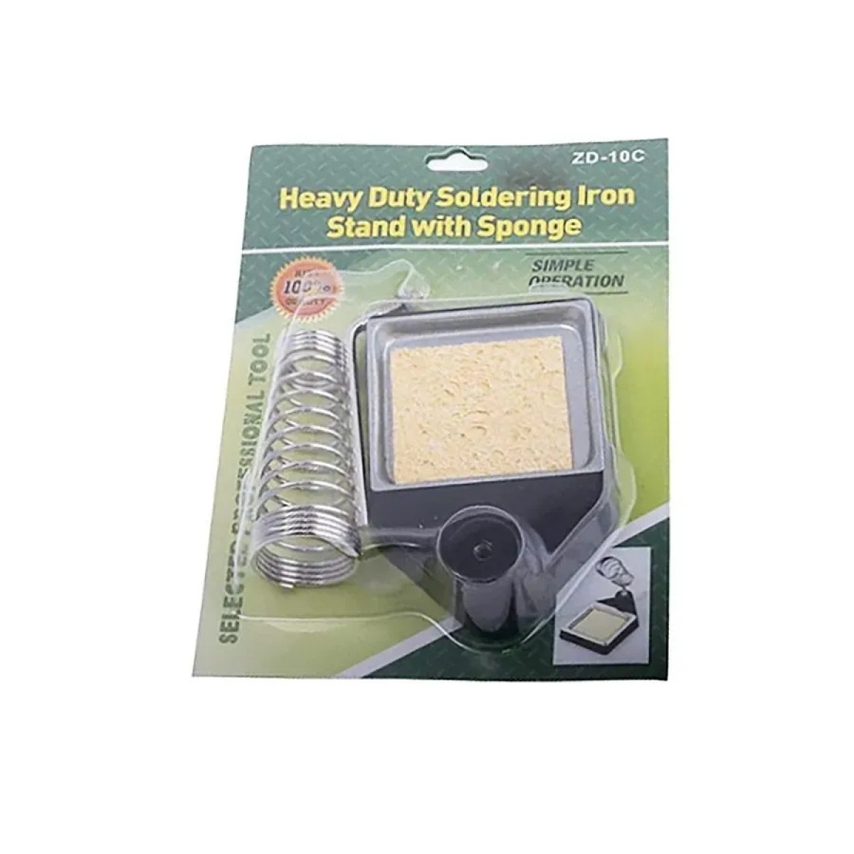 Ce support de fer à souder est un outil pratique pour le soudage électronique. Il augmente la commodité lors de vos travaux et protège votre surface de travail des dommages causés par la pointe chaude. L'éponge fournie avec le support vous permet de nettoyer la pointe du fer à souder.
